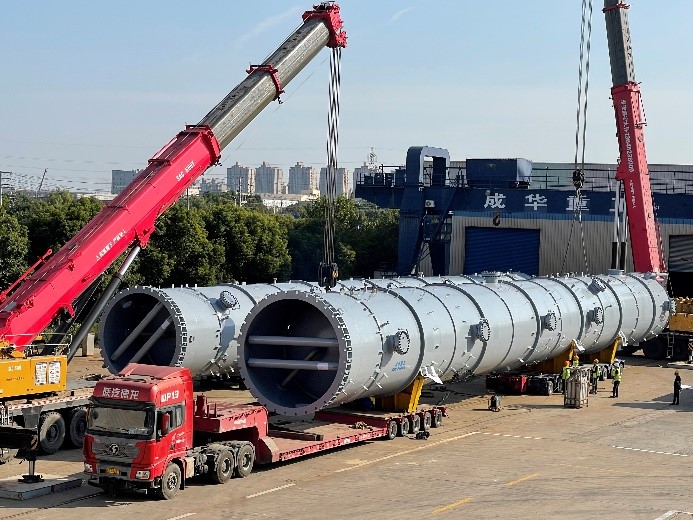 截止2022年10月25日,我公司生產(chǎn)制造的海南逸盛PTA二期項(xiàng)目4臺(tái)塔器已順利交貨,在客戶指定的時(shí)間內(nèi)將所有產(chǎn)品全部發(fā)到海南逸盛碼頭。