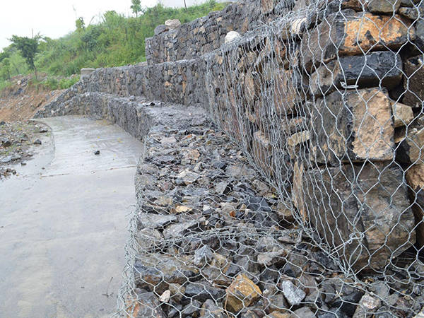 網(wǎng)箱是指用重型六角網(wǎng)作的箱型網(wǎng)籠,因此有稱(chēng)之為“石籠網(wǎng)或者石籠網(wǎng)網(wǎng)箱”,歐洲也叫格賓網(wǎng),石籠網(wǎng)箱。石籠網(wǎng)箱在施工現(xiàn)場(chǎng)經(jīng)石頭填充,構(gòu)成具有柔性、透水性及整體性的結(jié)構(gòu), 如擋墻、河道襯砌、堰等支擋的防沖蝕工程。 石籠網(wǎng)箱由間隔1米的隔板(雙絞合六邊形金屬網(wǎng)片)分成若干單元格,為了加強(qiáng)石籠網(wǎng)箱結(jié)構(gòu)的強(qiáng)度, 所有的面網(wǎng)板邊端均采用直徑粗的鋼絲??刂坪鸵龑?dǎo)河流及洪水泄洪壩、導(dǎo)流壩巖崩防護(hù)、防止水土流失、大橋保護(hù)、固土結(jié)構(gòu)、海濱防御工程、港口工程和擋土墻道路防護(hù)。